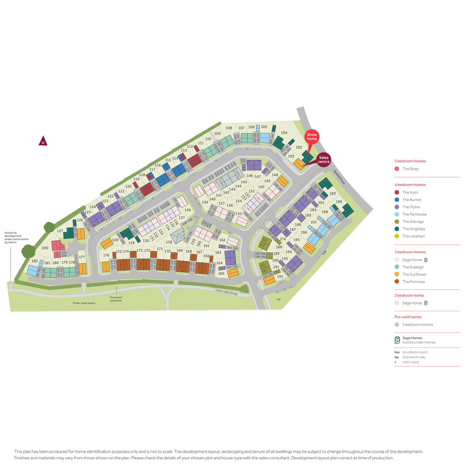 View Opening Hours*64% energy saving Data from the Home Builders Federation and YouGov. 5-star home rating based on the independent annual home owner survey conducted by the Home Builders Federation. The site plan which can be found on this page, has been produced for home identification purposes only and is not to scale. The development layout, landscaping and tenure of all dwellings may be subject to change throughout the course of the development. Finishes and materials may vary from those shown on the plan. Please check the details of your chosen plot and house type with the sales consultant. Development layout plan correct at time of production.