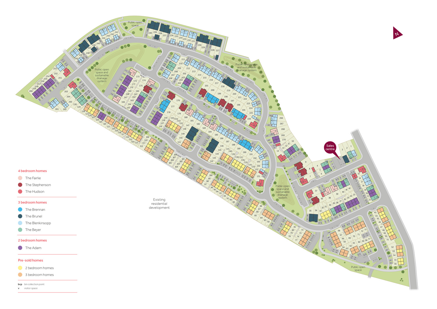 View Opening HoursThe site plan which can be found on this page, has been produced for home identification purposes only and is not to scale. The development layout, landscaping and tenure of all dwellings may be subject to change throughout the course of the development. Finishes and materials may vary from those shown on the plan. Please check the details of your chosen plot and house type with the sales consultant. Development layout plan correct at time of production.