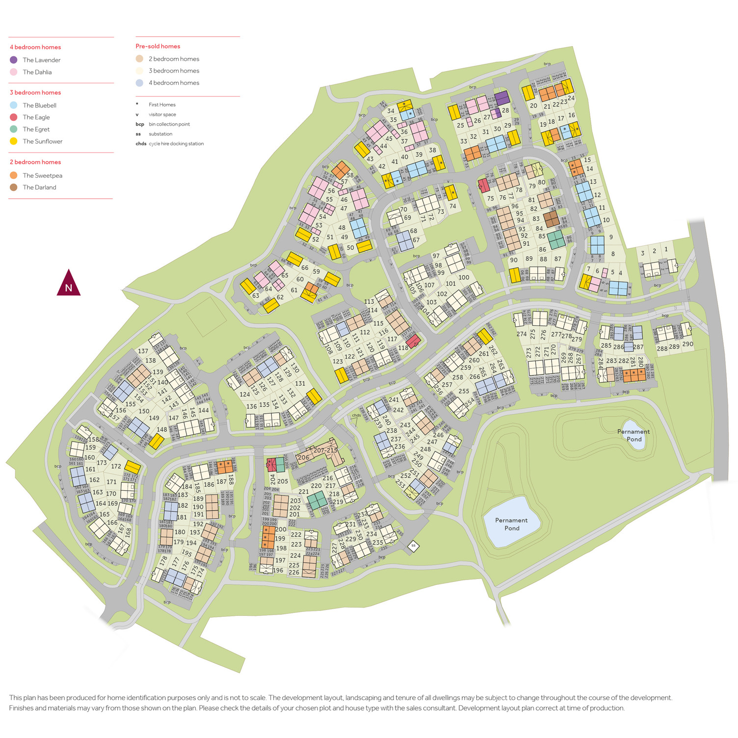 View Opening HoursThe site plan which can be found on this page, has been produced for home identification purposes only and is not to scale. The development layout, landscaping and tenure of all dwellings may be subject to change throughout the course of the development. Finishes and materials may vary from those shown on the plan. Please check the details of your chosen plot and house type with the sales consultant. Development layout plan correct at time of production.